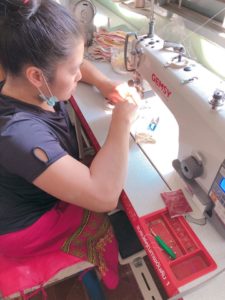 ミシン掛けの作業は障がい作業所ソンパオのミシンチームが担当します。手や足に障がいがある彼らですが、とても器用でモノづくりが大好きです。2017年から職業訓練を開始し、メガネケースなどの雑貨からトートバッグまで作れるようになりました。SWHはソンパオに所属する25名の障がい当事者の雇用を守っていきます。